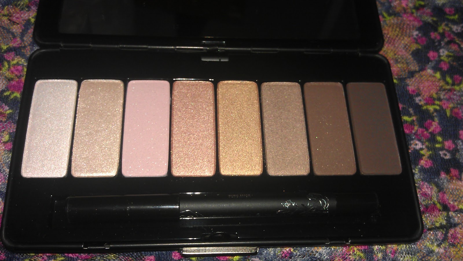 Kat Von D. Saint palette, Nars lipstick in Schiap and Urban Decay setting spray and primer duo. If you've never tried Kat Von D's eyeshadow I suggest you head over to Sephora... :) not only are her eyeshadows extremely pigmented, they're super smooth and creamy. They feel like butter! I've yet to try the Urban Decay setting spray...hope it keeps my makeup intact :)